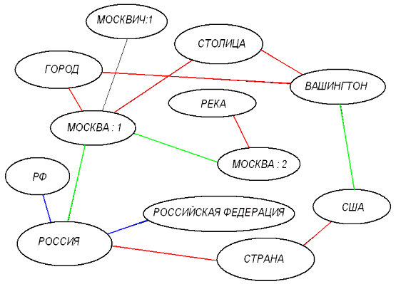 Рис 1. Фрагмент семантической сети.
